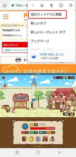 (※「他のウィンドウに移動」が表示されない場合は、まず、Android のマルチウィンドウ機能で2つのアプリを開いておく必要があります。)
