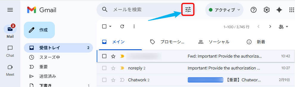 まず、Gmail の検索窓から以下のキーワードを指定してメールを検索します。