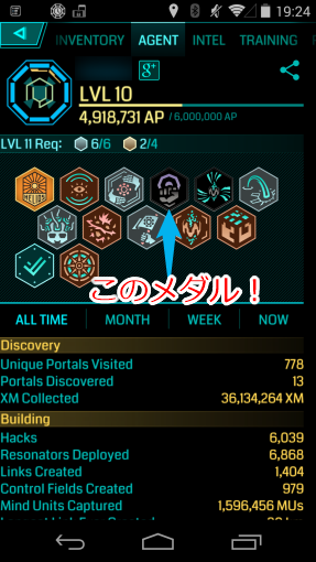 古参エージェントは割りと持ってるメダルなので、最初は大したレアリティはないんだろう。と、思っていたけれども、意識し始めると本当にすごくプレッシャーのかかるメダルで。特に、今みたくユーザーが増えると、都市部で獲るのはなかなか大変なんじゃ。とは思うわけです。