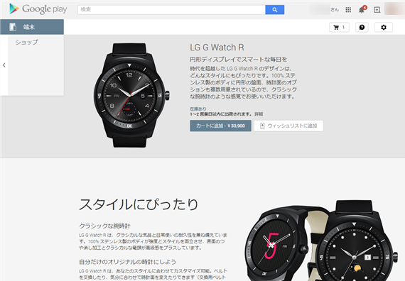 「LG G Watch R」が日本向けGoogle Playから注文可能に