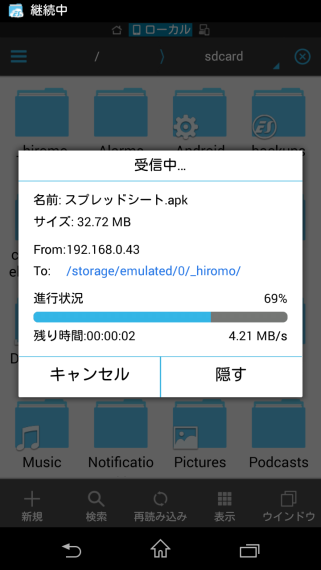 ESファイルエクスプローラーの APK 抜き機能と組み合わせれば、多分、他の Android からWi-Fi経由でアプリの APK を引っこ抜いて転送する1番カンタンな方法と思います。