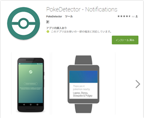 「ポケモンGO」は、Ingress と違って Android Wear に正式対応していないのが不満でしたが、とりあえずこのアプリをインストールすれば、近くのポケモンの出現が分かるので大変便利です。