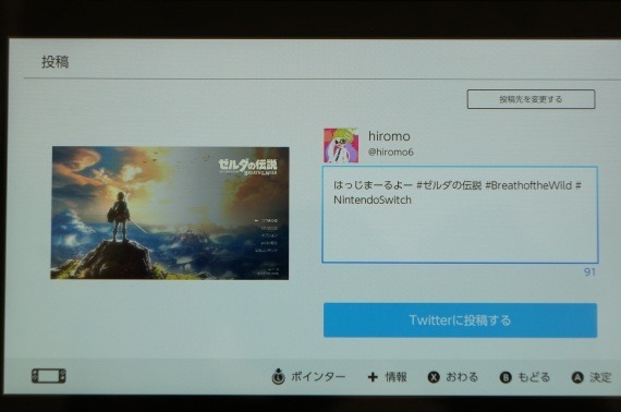 Nintendo Switchのゲーム画面をSNSに投稿する方法(Twitter・Facebook)