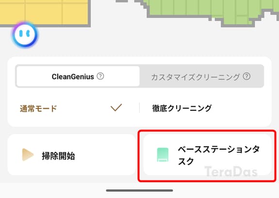 コツは清掃開始前に「ベースステーションタスク」→「モップ洗浄」を実行
