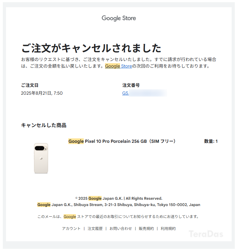 そして、発送後なら Google Store サポートに連絡する必要がある、ということになります。