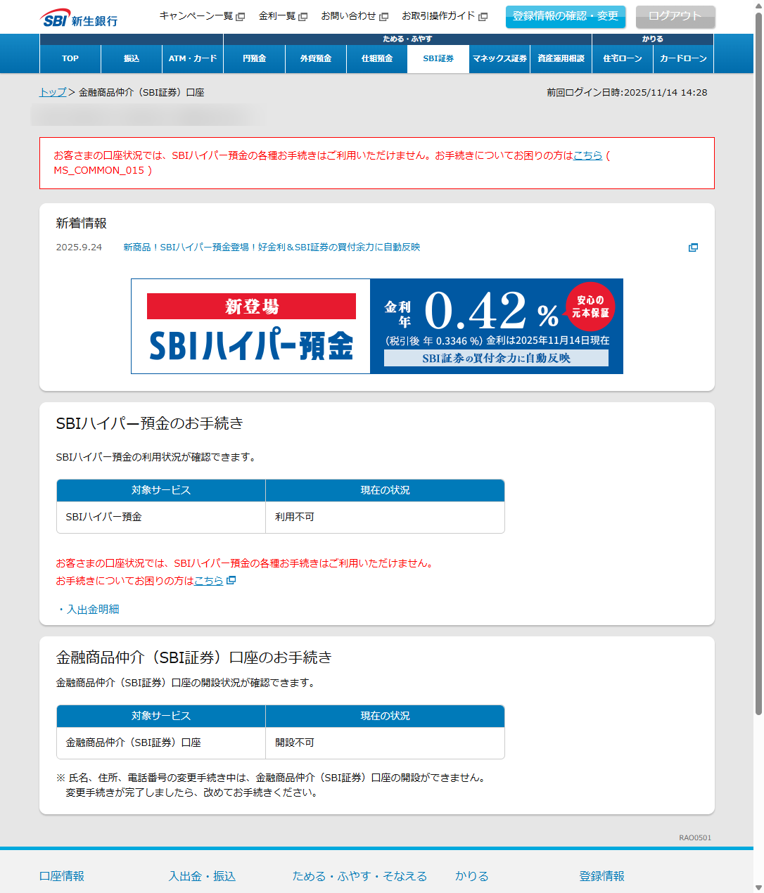 【SBI新生銀行】「SBIハイパー預金のお手続きはご利用いただけません(MS_COMMON_015)」エラーの対処をした話