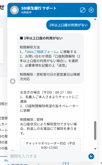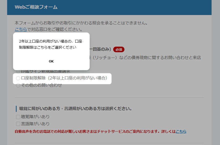 - 「Webご相談フォーム」から「口座制限解除」を申請する