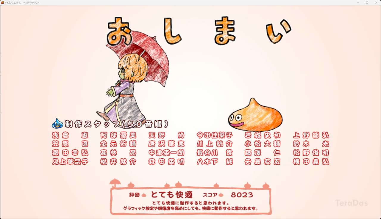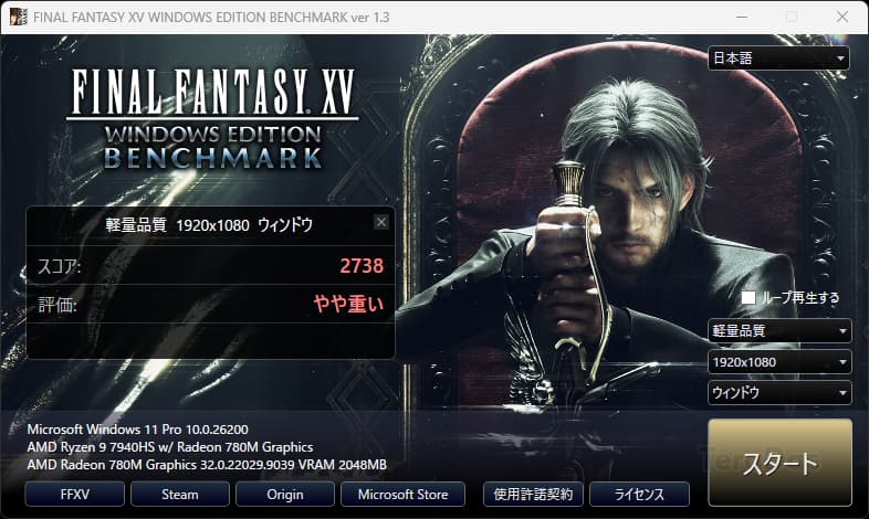 | 標準品質、1920x1080、ウィンドウ | 8,023(とても快適) |