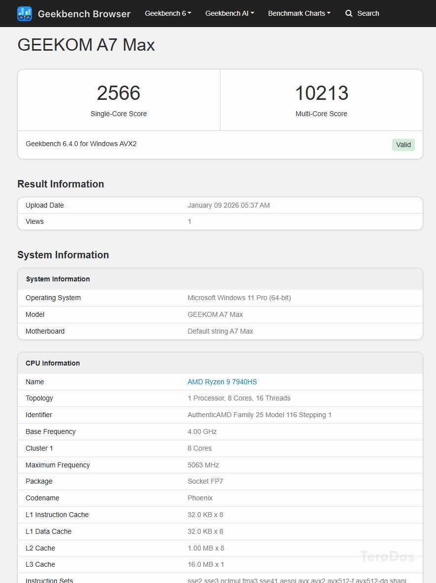 | CPU | AMD Ryzen 9 7940HS (8コア/16スレッド) |