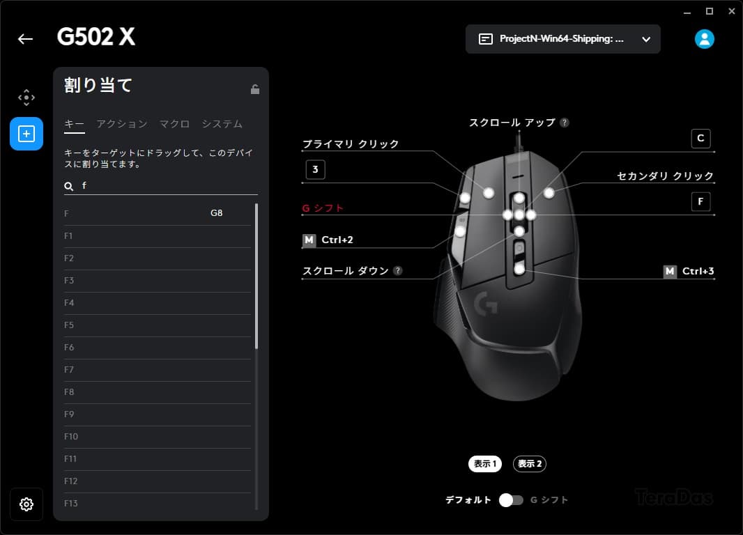 「G502 X」のニノクロ向けボタン割り当て