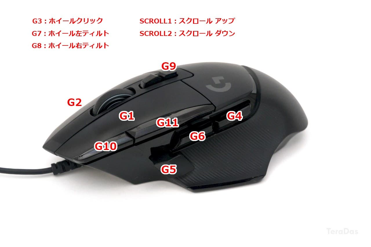 G9 は中指の根本で、G11 は人差し指の根本で押す前提。G502 X の G9 ボタンは少し押しづらいのが難点。