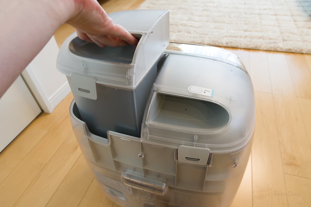 水・汚水タンクのフタは、ステーションの天面も兼ねるデザイン。ステーション側にフタがないことで給排水の手間が1つ減り、設置場所の高さ方向にも少し余裕が生まれます。