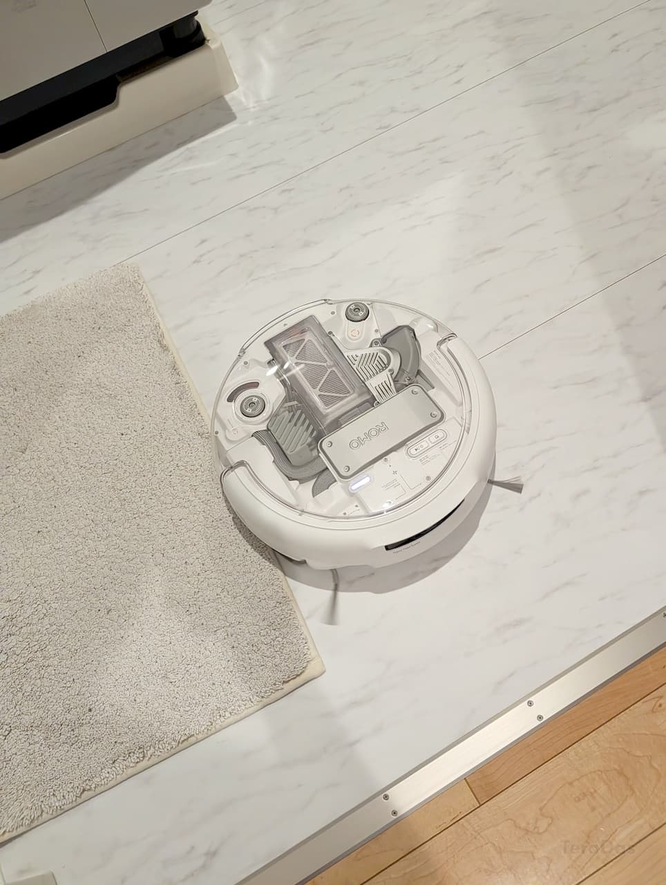 「ROMO」はラグのエッジにも回転ブラシを当てて清掃する場合があります。賢さを感じる挙動です。