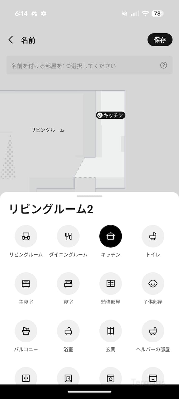 「キッチンとトイレを単独でモップする」機能は、マップに登録された部屋名でキッチンとトイレを判別している模様。