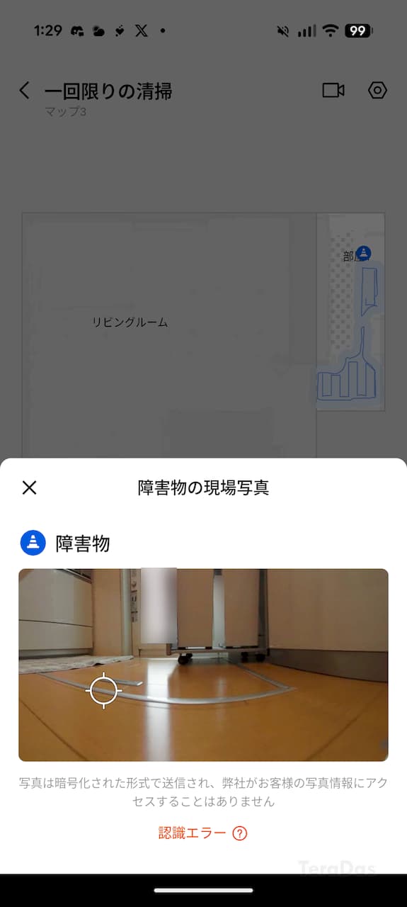 「障害物回避設定」を最強にすると、わずか厚さ2mmの床下収納の入口すら障害物として認識。