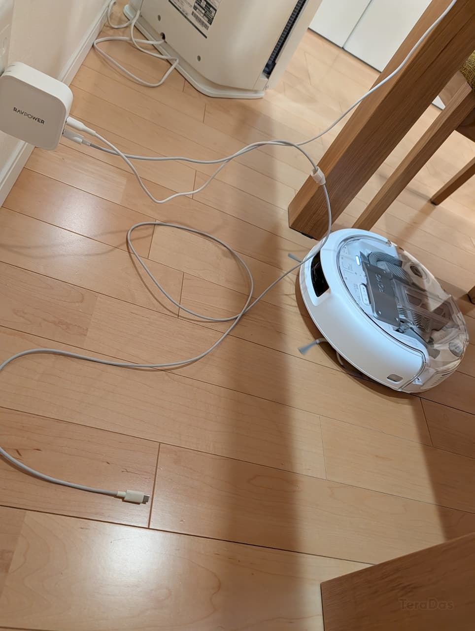 コレが非常に便利で、我が家では「ランドリールームの吸引のみ」タスクに割り当て中。ドライヤー乾燥後、落ちた髪の毛が他の部屋へ広がる前に吸わせています。