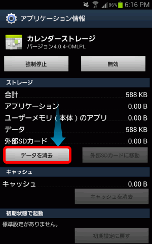 2.カレンダストレージの無効化→データ削除