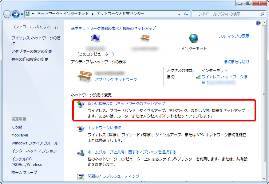 「ネットワークと共有センター」→「アダプターの設定の変更」